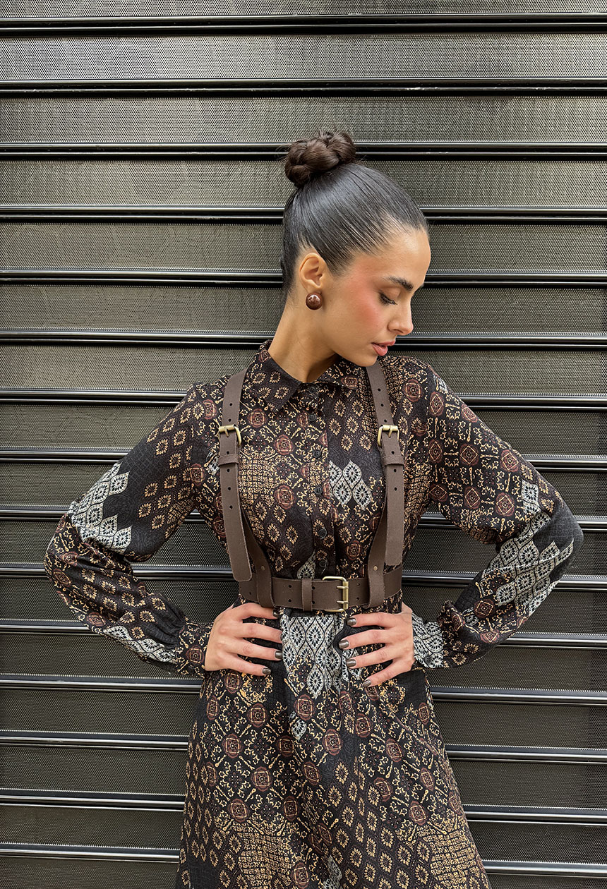 Ένα statement αξεσουάρ που προσθέτει χαρακτήρα και κομψότητα σε κάθε πουκάμισο, φόρεμα ή σακάκι. Κατασκευασμένη από ποιοτικό συνθετικό δέρμα, αγκαλιάζει τη μέση με ρυθμιζόμενα λουριά και μεταλλικές αγκράφες, προσφέροντας τέλεια εφαρμογή και μοντέρνο στυλ.