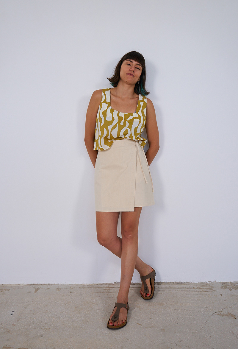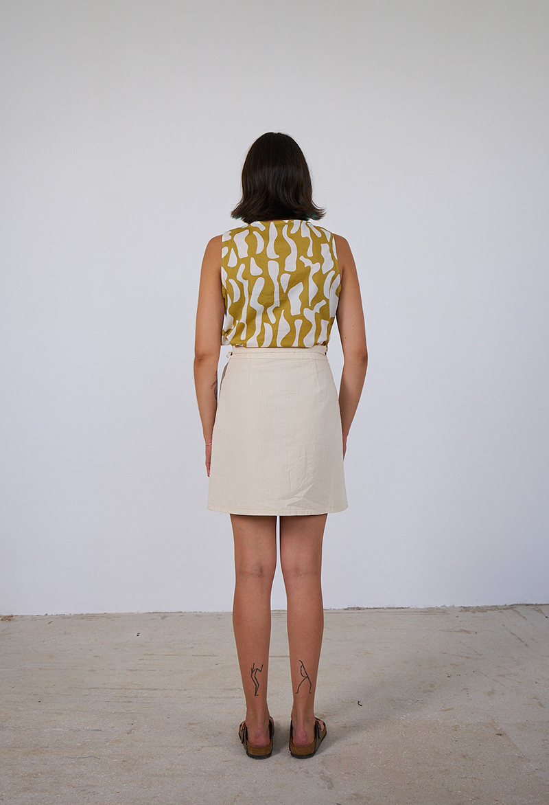 Φούστα μίνι,wrap,από βαμβακερό ύφασμα.