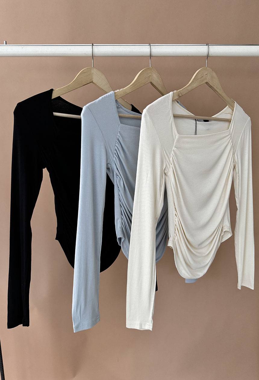 Μπλούζα ντραπέ στενή μακρυμάνικη, τετράγωνη λαιμόκοψη σε τρεις αποχρώσεις.