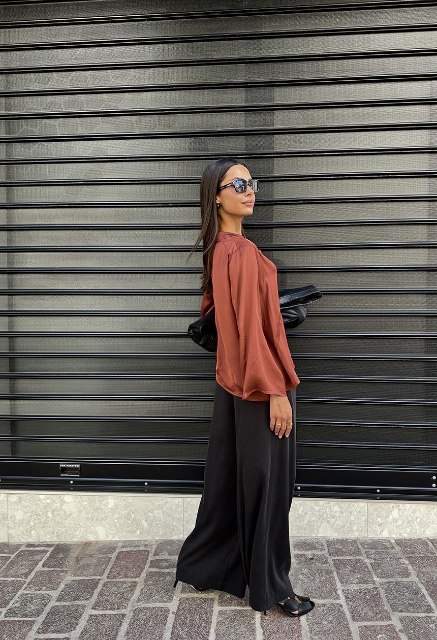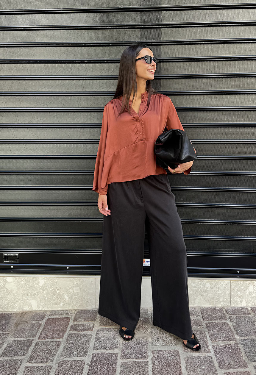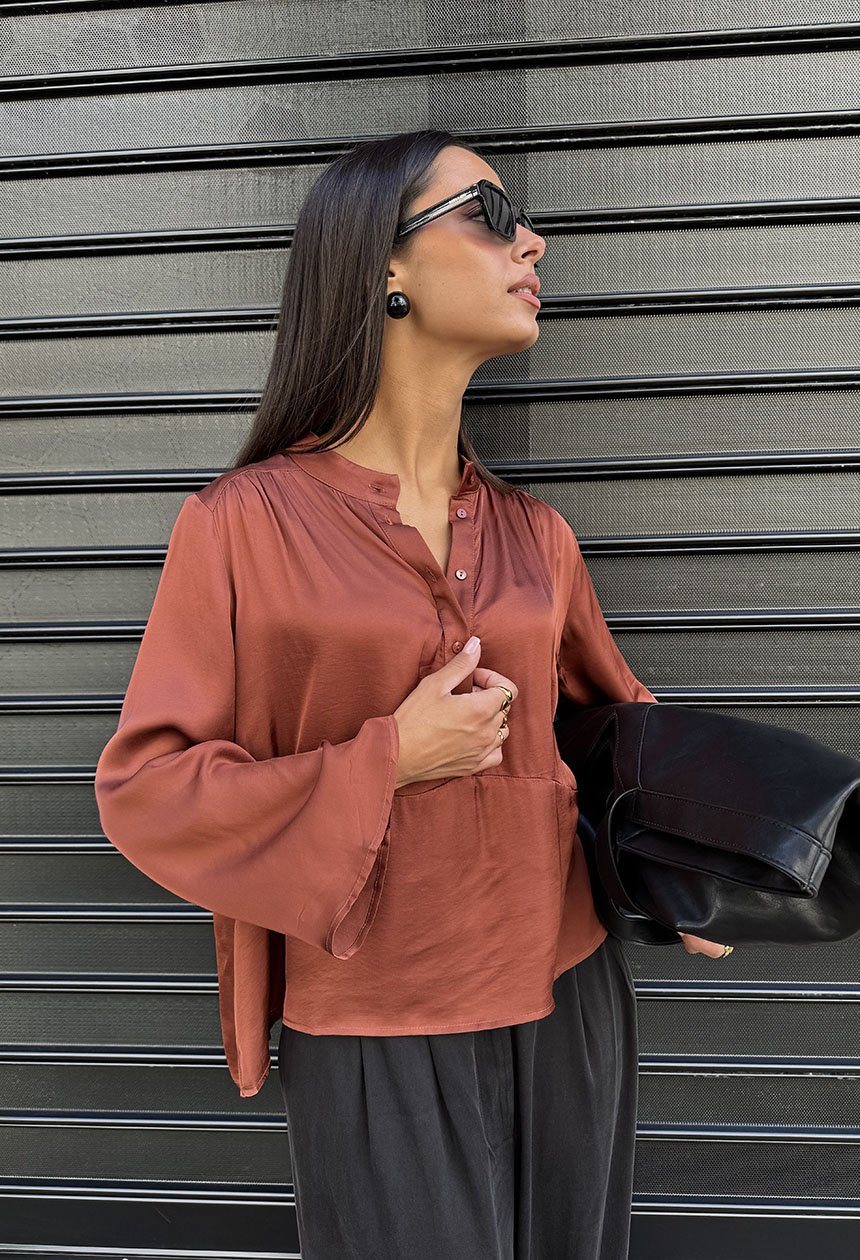 Τουνίκ σε χαλαρή ριχτή γραμμή,από ελαφριά βισκόζη που χαρίζει ανάλαφρη διάθεση. Ο μάο γιακάς καταλήγει σε άνοιγμα με πατιλέτα και κουμπιά, δημιουργώντας διακριτικό ντεκολτέ.Τα μακριά μανίκια που ανοίγουν στο τελείωμα προσδίδουν ιδιαίτερο στυλ.